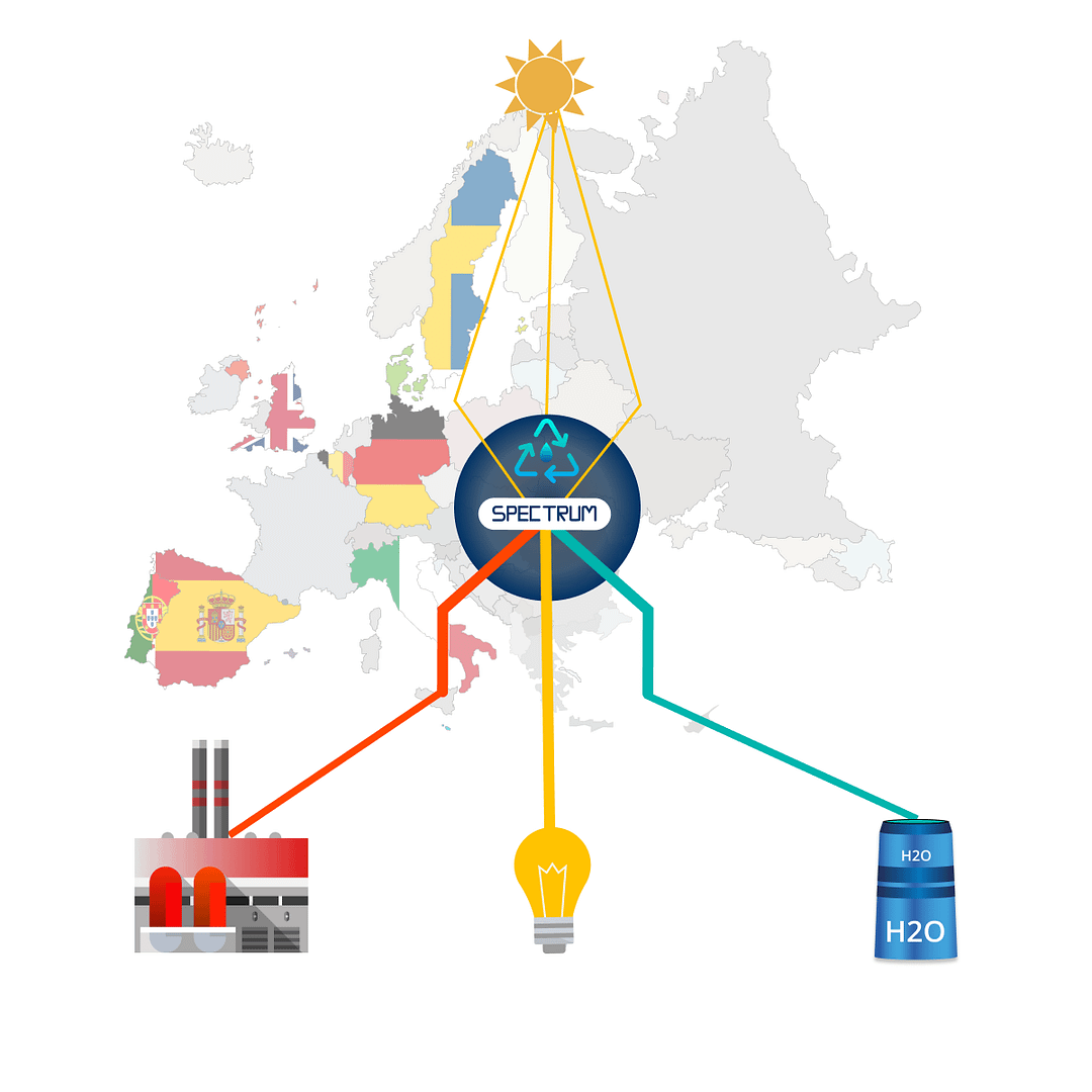 The SPECTRUM project aims to develop and validate a groundbreaking solar concentrating collector that fully harnesses the solar spectrum. This collector will convert solar radiation into solar heat, green hydrogen, and solar electricity while also providing industrial wastewater treatment. Additionally, the project aims to develop cost-effective, sustainable components, processes, and solutions that maximise local energy generation and wastewater treatment. A life-cycle sustainability assessment will be performed to validate the collector's techno-economic, environmental, and social sustainability.
